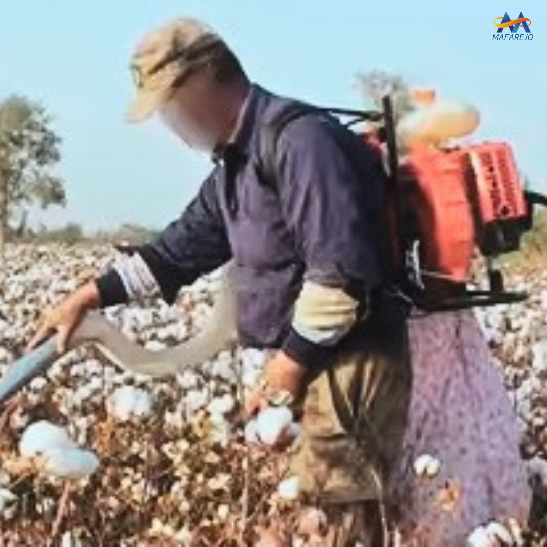 Equipamento portátil com motor 2 tempos, ideal para colheita de algodão. Reduz o esforço manual, melhora produtividade e qualidade da colheita.